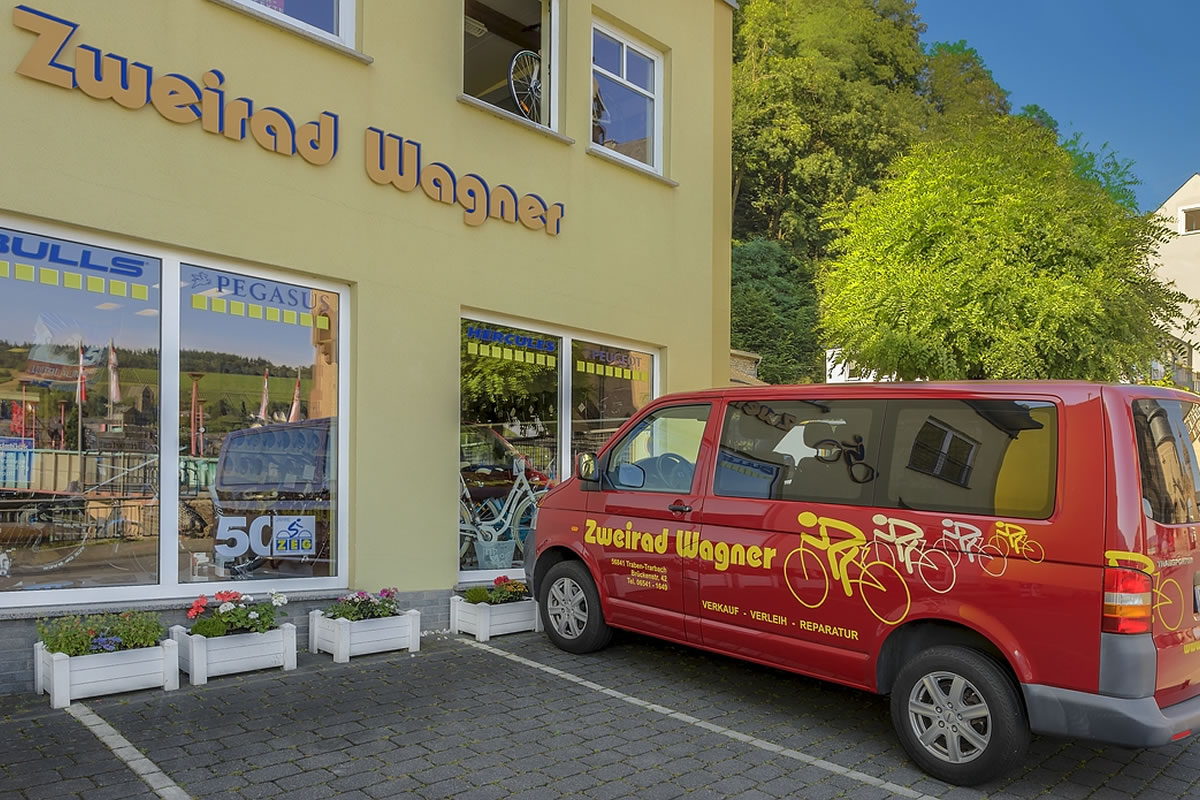 Ein Fahrradgeschäft, in dem du nicht nur Ersatzteile kaufen und dein Fahrrad warten lassen kannst, sondern auch eine Tasse Kaffee genießen kannst: