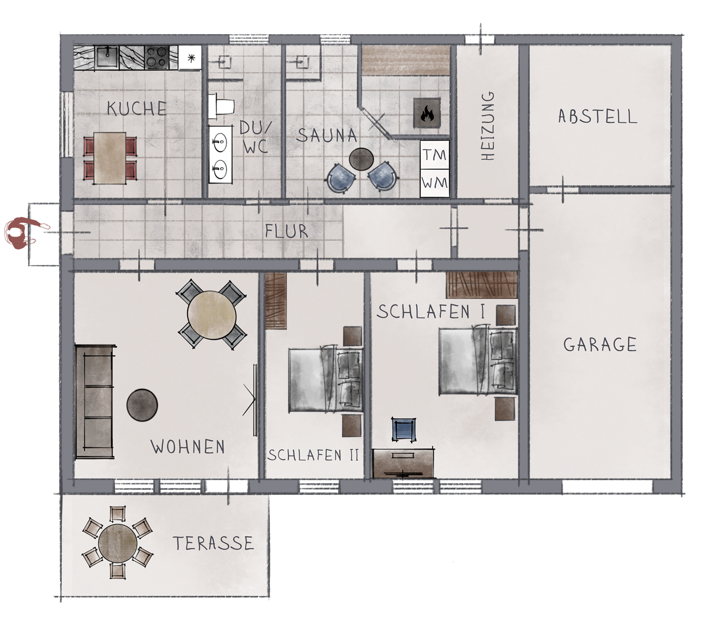 Sie können sich ausführlich mit dem Apartmentgrundriss vertraut machen.