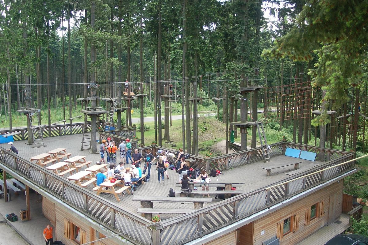 Forest A world of beams and obstacles awaits you with exciting challenges for your personal adventure! Nestled in the picturesque Mosel Valley, situated between the Vulkaneifel and Hunsrück, the Mosel Adventure Forest is perched high atop the ancient ruins of Mont Royal Fortress.